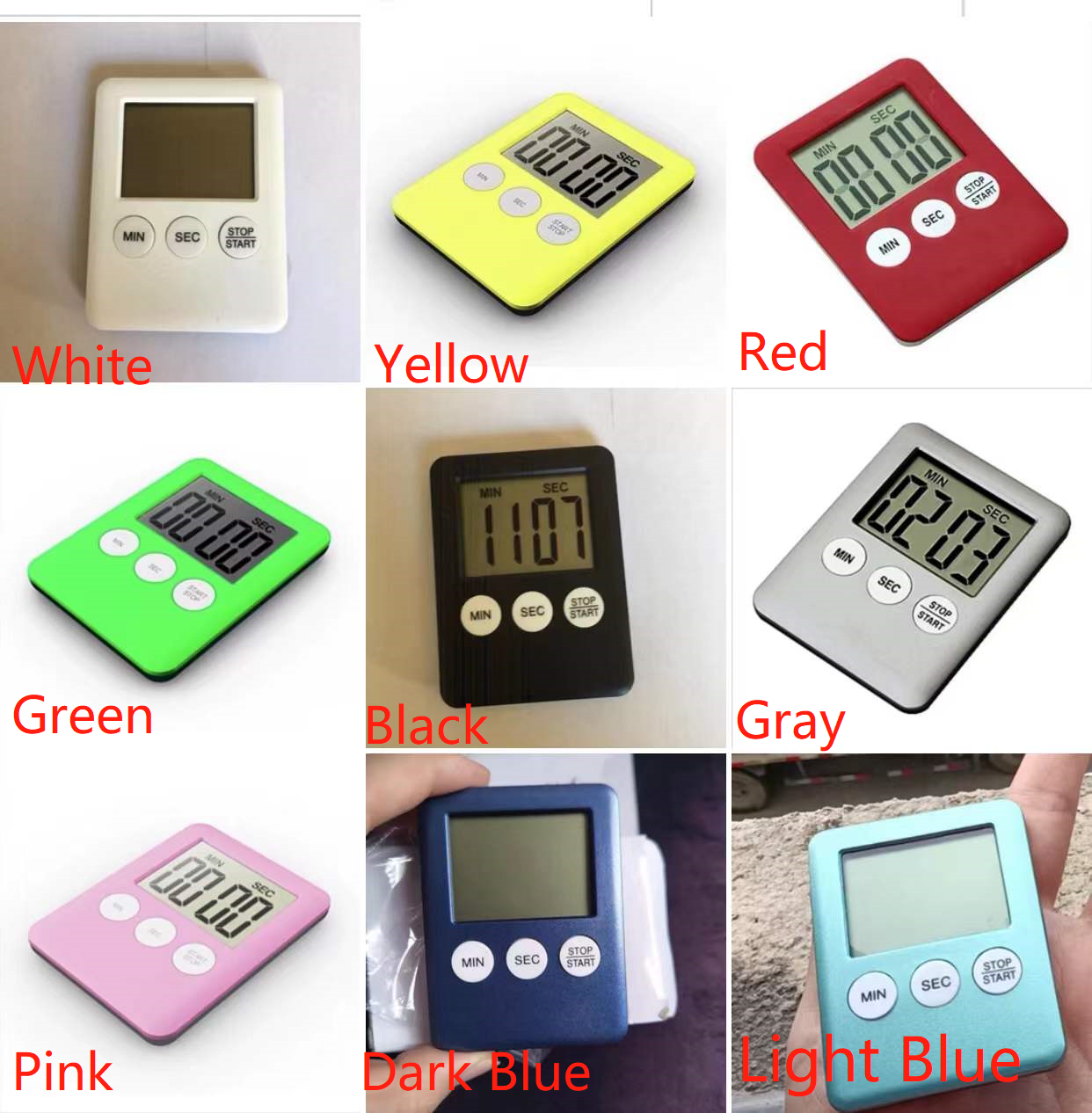 1Pcs 9 Colors Super Thin LCD Digital Screen Kitchen Timer Square Cooking Count up Countdown Alarm Magnet Clock