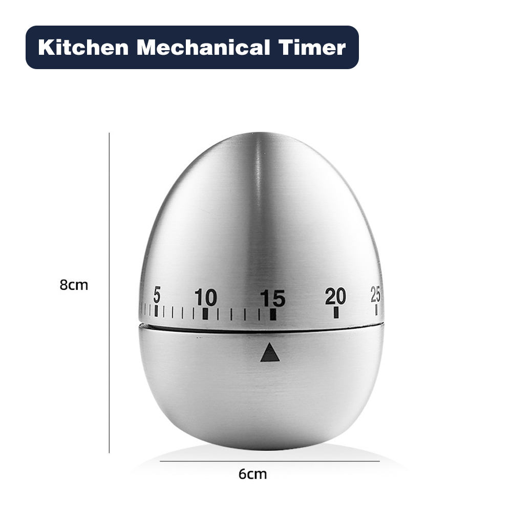 60min Kitchen Mechanical Egg-shaped Timer Stainless Steel Baking Time Reminder for Kitchen Timer