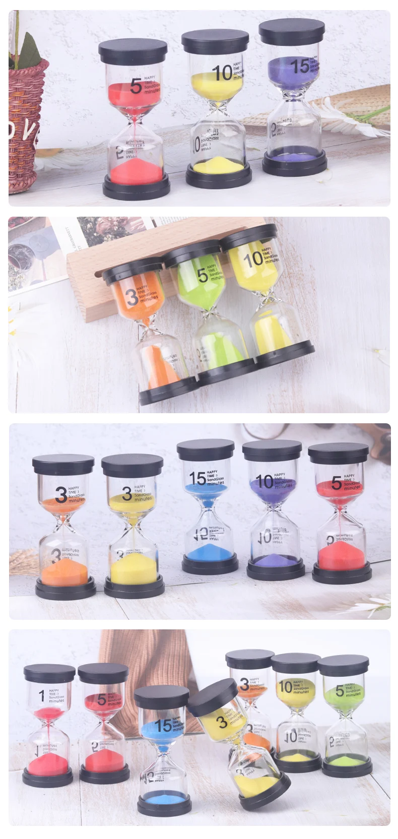 product name: colorful 1/3/5/10/15/30 minutes sand timer set pack of 6pcs hourglass sand timer for kids game timer