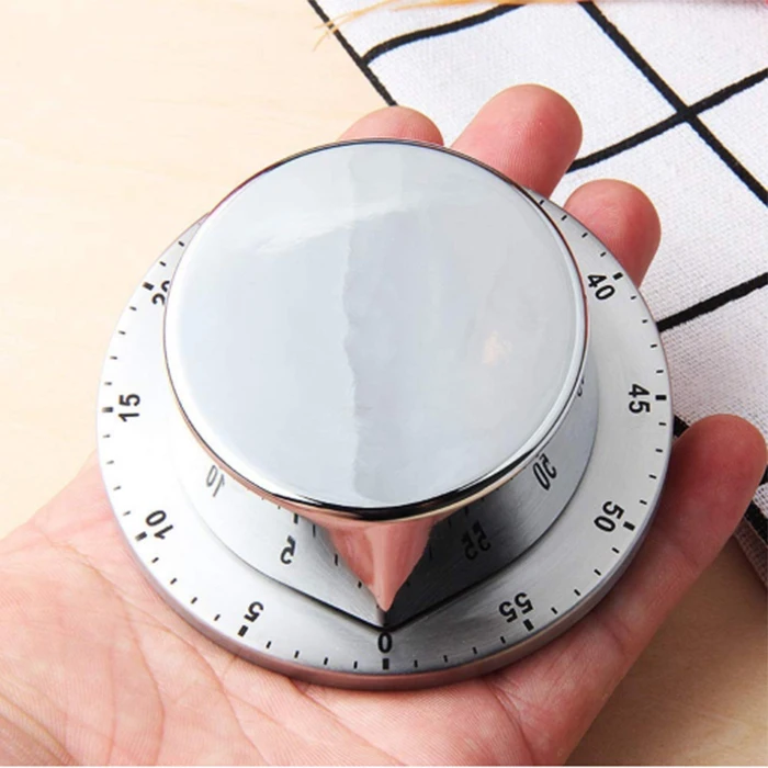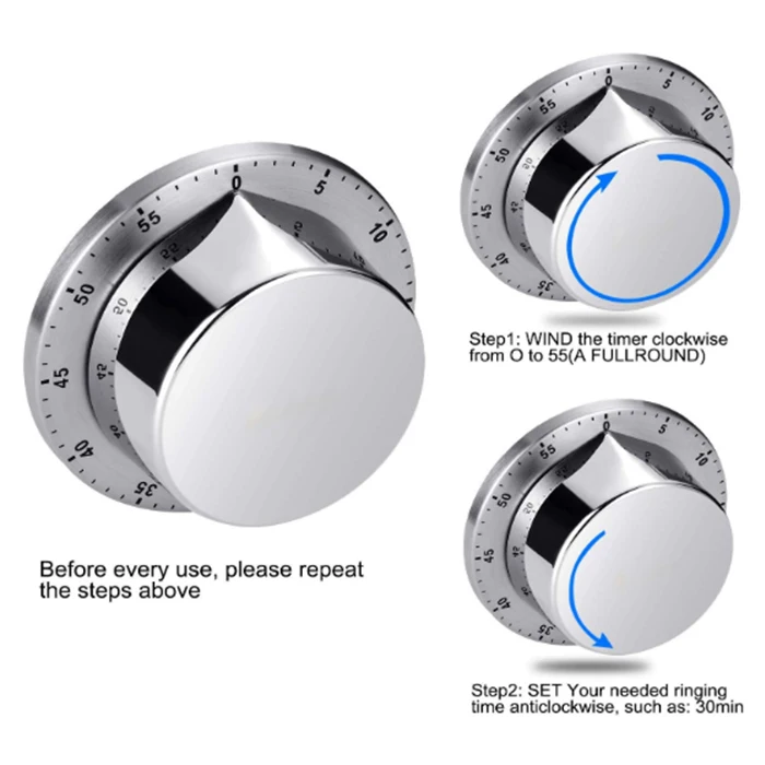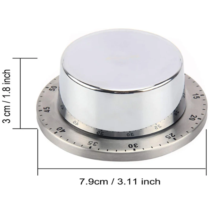 Item: JR Mini Round Stainless Steel Rotating Mechanical Kitchen 60 Minute Countdown Magnetic Alarm Pizza Cooking Reminder Timer