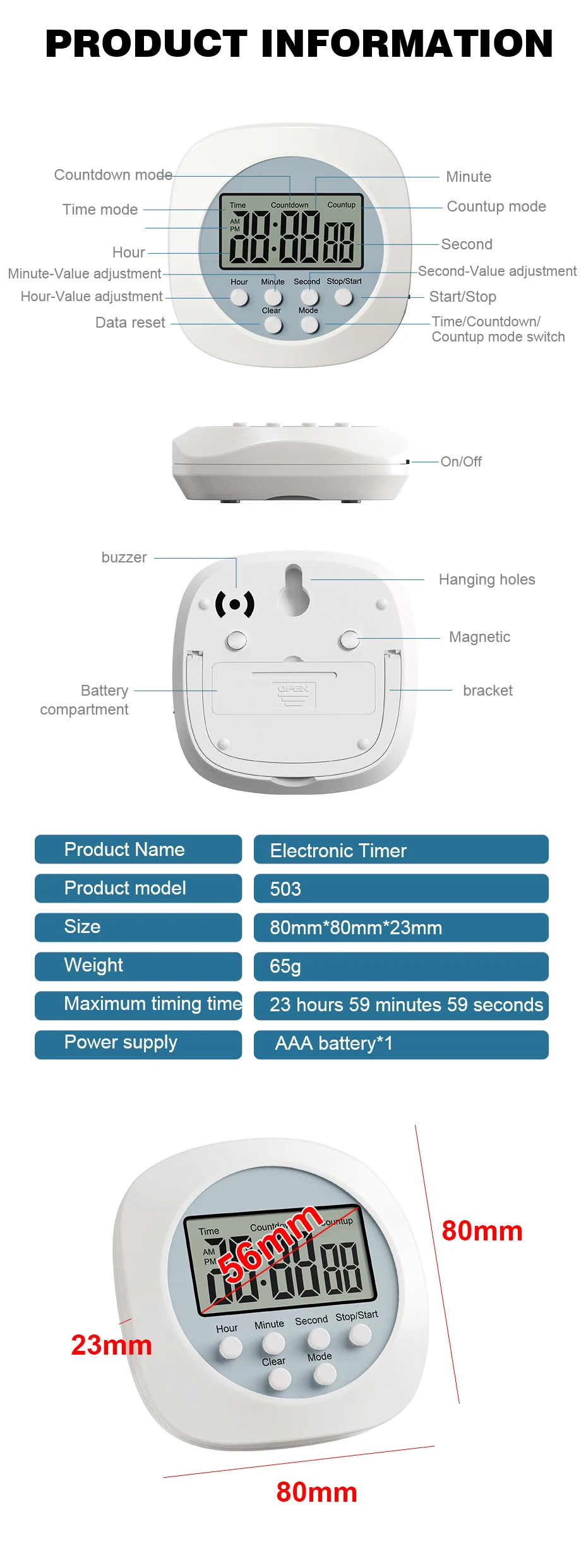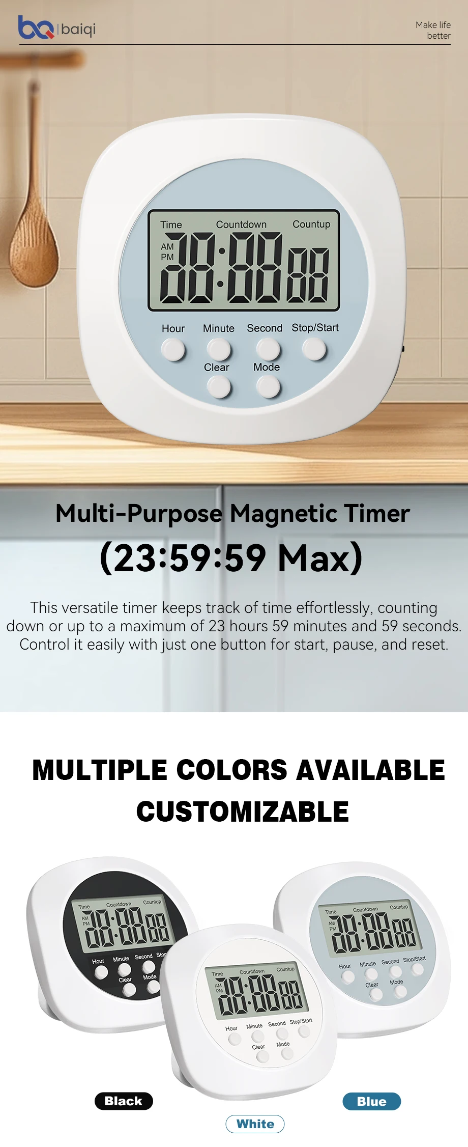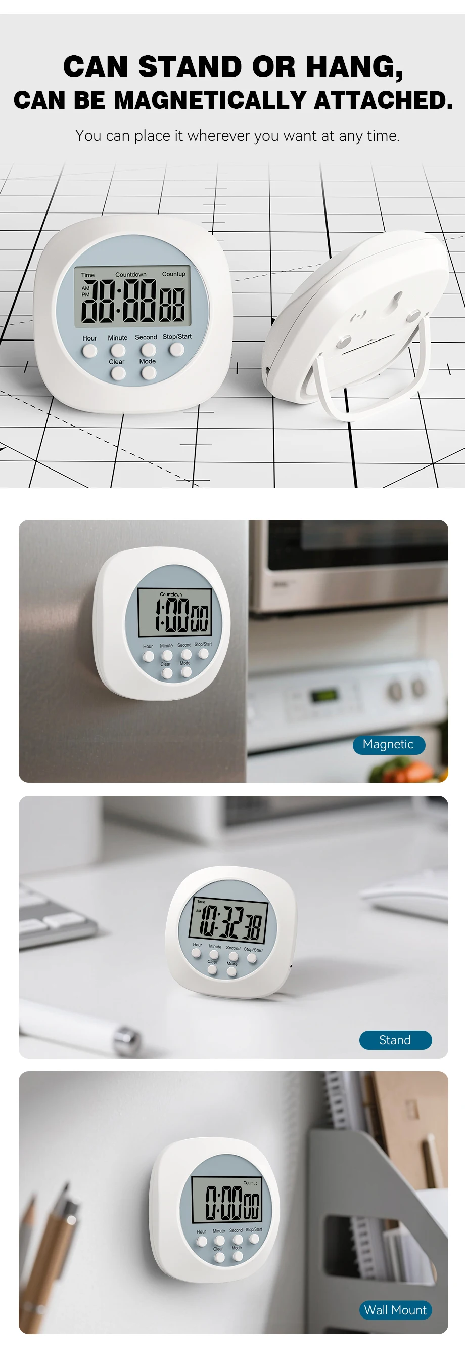 Magnetic Digital Kitchen Timer with Loud Alarm Plastic Cooking Countdown Timer for Baking BBQ Study Uses