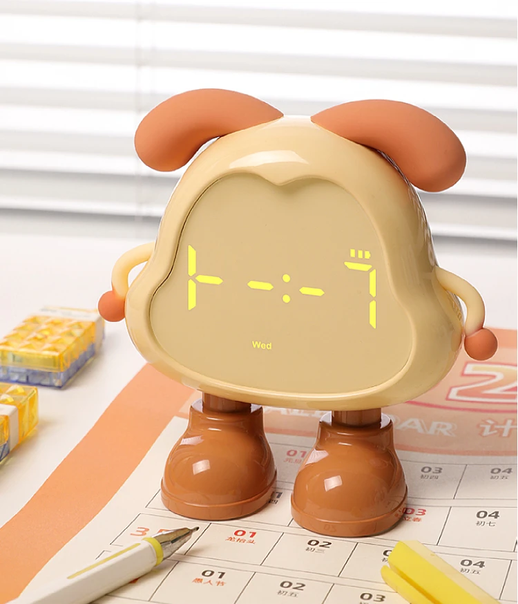 Modern Dog Desk Clock with Warm Night Light Bell Alarm Quartz Movement-for Bedroom Office or Lunch Break Decor